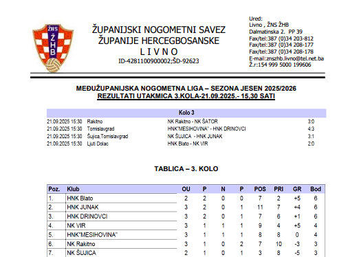 Rezultat 3. kola i najava 4.kola 28.09.2025.