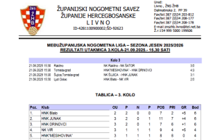 Rezultati 3. kola i najava 4. kola 20.09.2025.